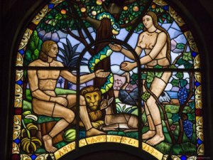 stained glass Adam and Eve